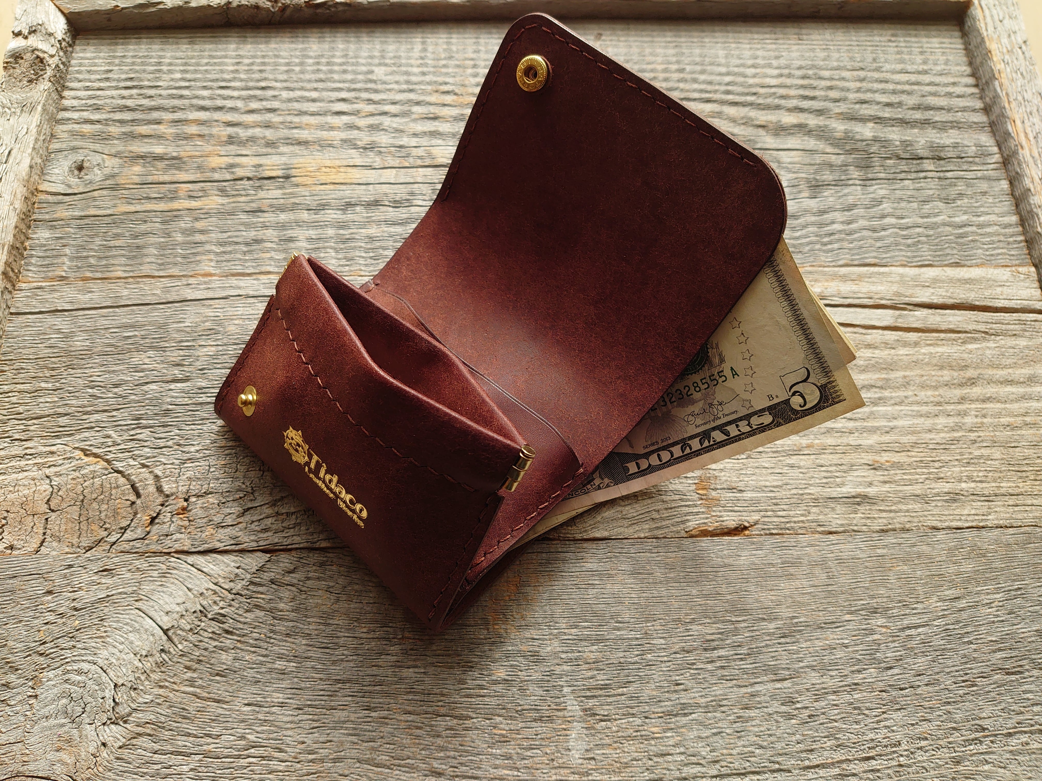 イタリアはバダラッシカルロ社のプエブロ(焦げ茶)を使用したコンパクト二つ折りウォレットです。